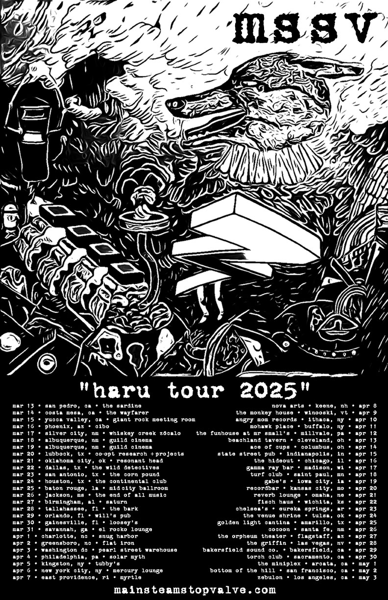 "BIG EGO Records is putting out the 3rd mssv studio album On And On March 7, 2025! So to celebrate that music coming forth into the world we are getting back in The Boat and hitting a lot of towns in the US and, after that, some towns in the UK and Ireland for the very first time. I love bringing this music to life for everybody at the shows with hodges and watt every night. I tell people that ask what it's like to play in this band that it's kind of like hot wiring a car you built, putting a brick on the gas pedal and then hopping on top and holding on til the end of the ride. These guys are truly daring and adventurous and live the music on their sleeves every night, I can't help but be inspired to do the same. I've always done my best learning by doing and I have no shortage of opportunities here with them. I'm always thankful for all of them.
